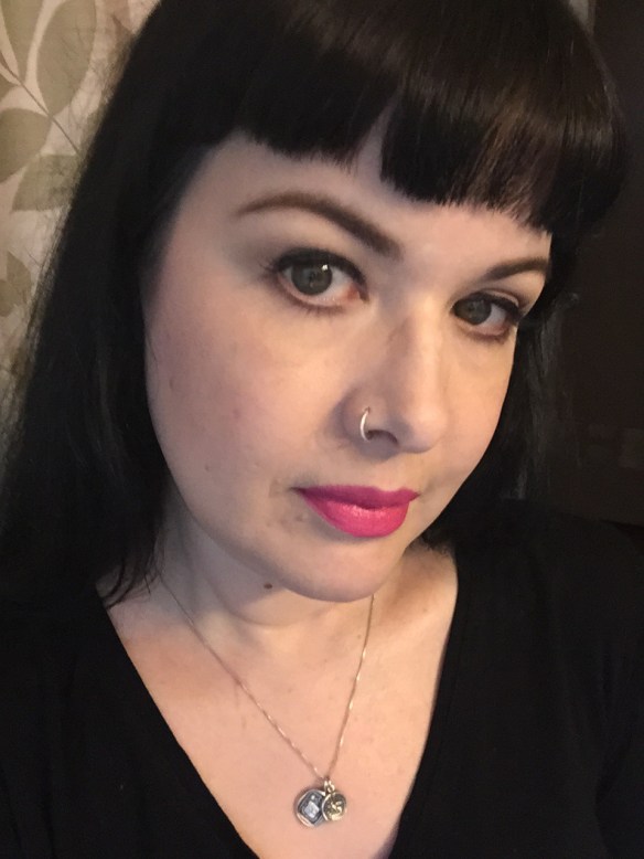 All in all, I have to say that while NYX can be a hit or miss brand for me, I love everything I got in this order. (I am also wearing the Photo Loving Primer underneath my foundation today – a long time favorite!) I am wearing the concealer, blush for contour, and black pigment here. I like that the contour is subtle, but I can go heavier for an evening look if I want to. The only thing I haven’t tried yet is the purple lipstick, but the photos I’ve seen online are (wait for it) Wicked.
