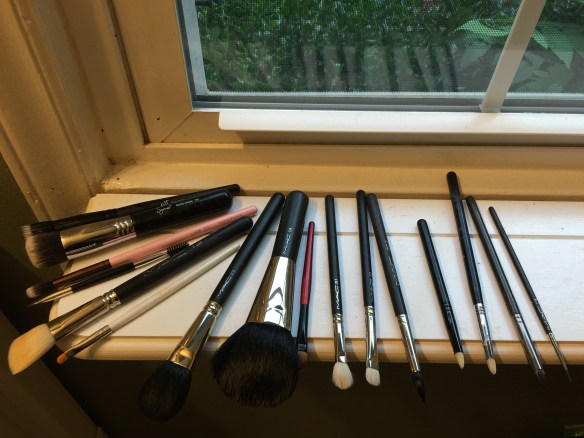 So, if I can get to it, I usually wash my brushes on Sunday (unless I haven’t used them much). This weekend I’ve been cleaning a lot and today I rearranged my new makeup desk setup (I recently moved EVERYTHING across the room because I decided standing up is for the birds). I’m sure I will keep moving it around because I cannot seem to get good lighting even with 2 lamps and a lighted mirror. Well…I got the cheap one…not the $200 one…ah, that’s a post for another day.