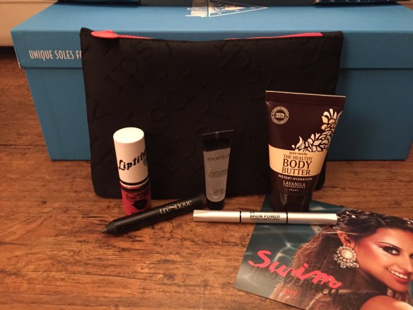 Eyeshadow pencil, brow pencil, primer, lip gloss and body butter – sounds good to me!