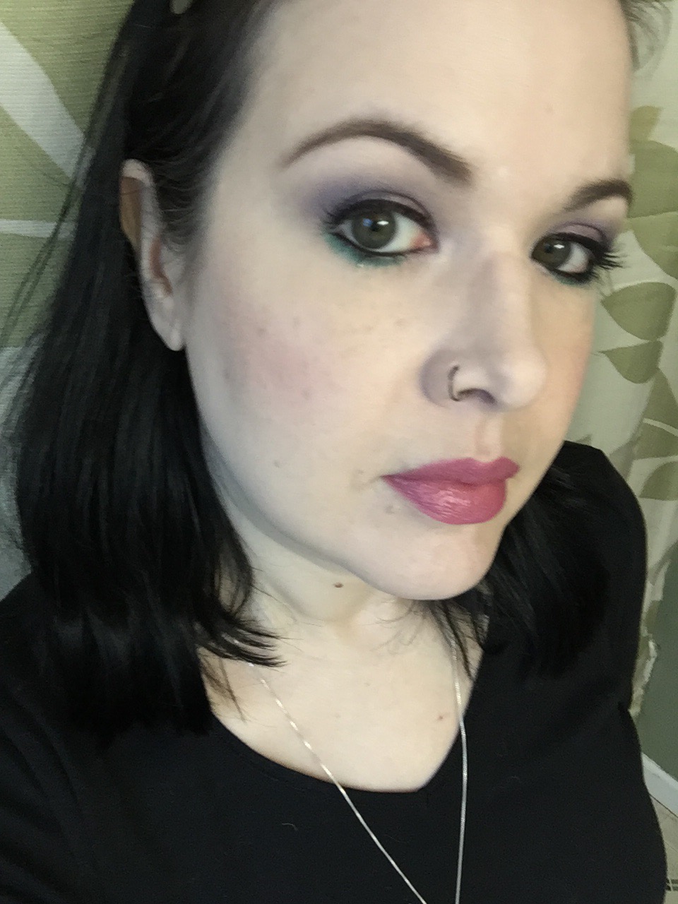 I still probably should have done my eyes first, but regardless, I had a much easier time using these shades.  Honestly, even as bold as I like to go with my makeup, the dark blue and purple in this palette are fairly impossible to work with because they’re so dark and become muddy easily if you blend a lot. Perhaps I can use them wet as eyeliner?