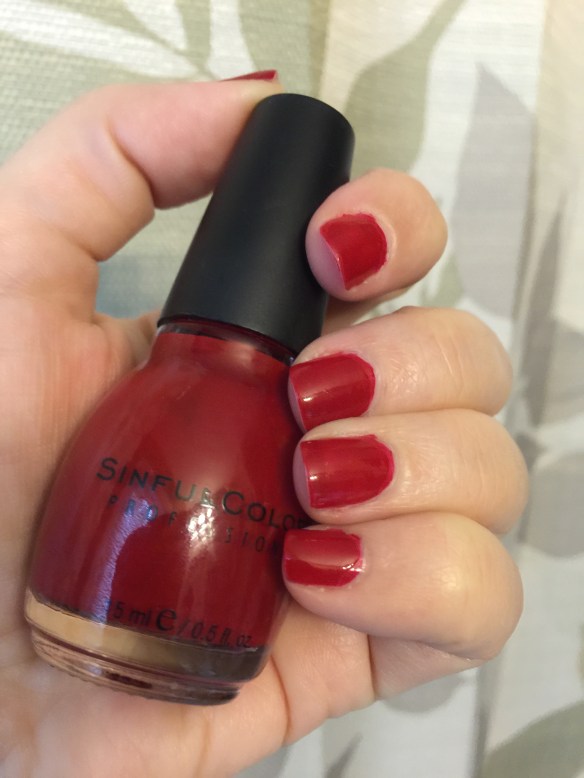 Ok, so I did a quick and sloppy job, but I got it done, finally – a quickie mani pedi with Sinful Colors “Bleeding Heart,” my holy grail red for at least 10 years. I believe this is my 3rd bottle. I use thinners so I can use bottles up, too!