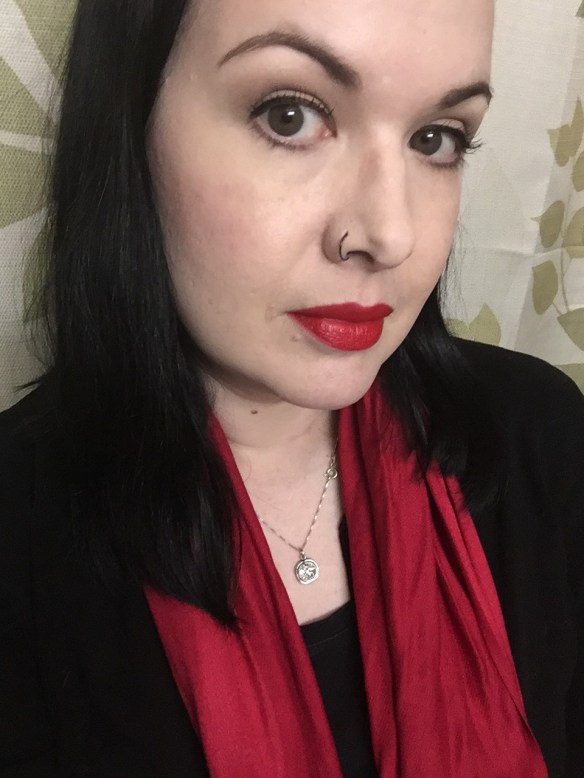 I bet you didn’t know my hair was this long. I’ve had it short since 2001, the longest it ever gets is about this length. When I dyed it recently, I couldn’t get all of the black out, but due to some stroke of luck I got enough out that it dyes burgundy when I hit it with the fuchsia dye I use (SpecialFX Virgin Rose).