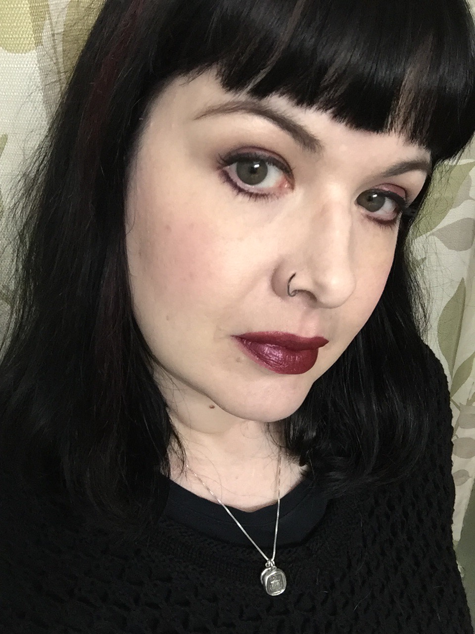 NUXE Reve de Miel balm (OMG so dry here), Skone Luxe Doubler pencil in Wine, Kat Von D Studded Kiss Lipstick in Mercy